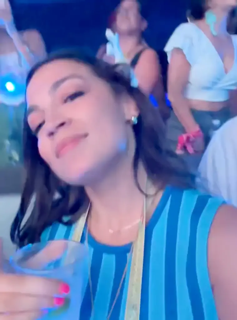 Social media video from Aug. 10, 2024, captured Ocasio-Cortez and Rep. Nydia Velázquez, D-NY, dancing in premium seating while the Puerto Rican rapper performed.