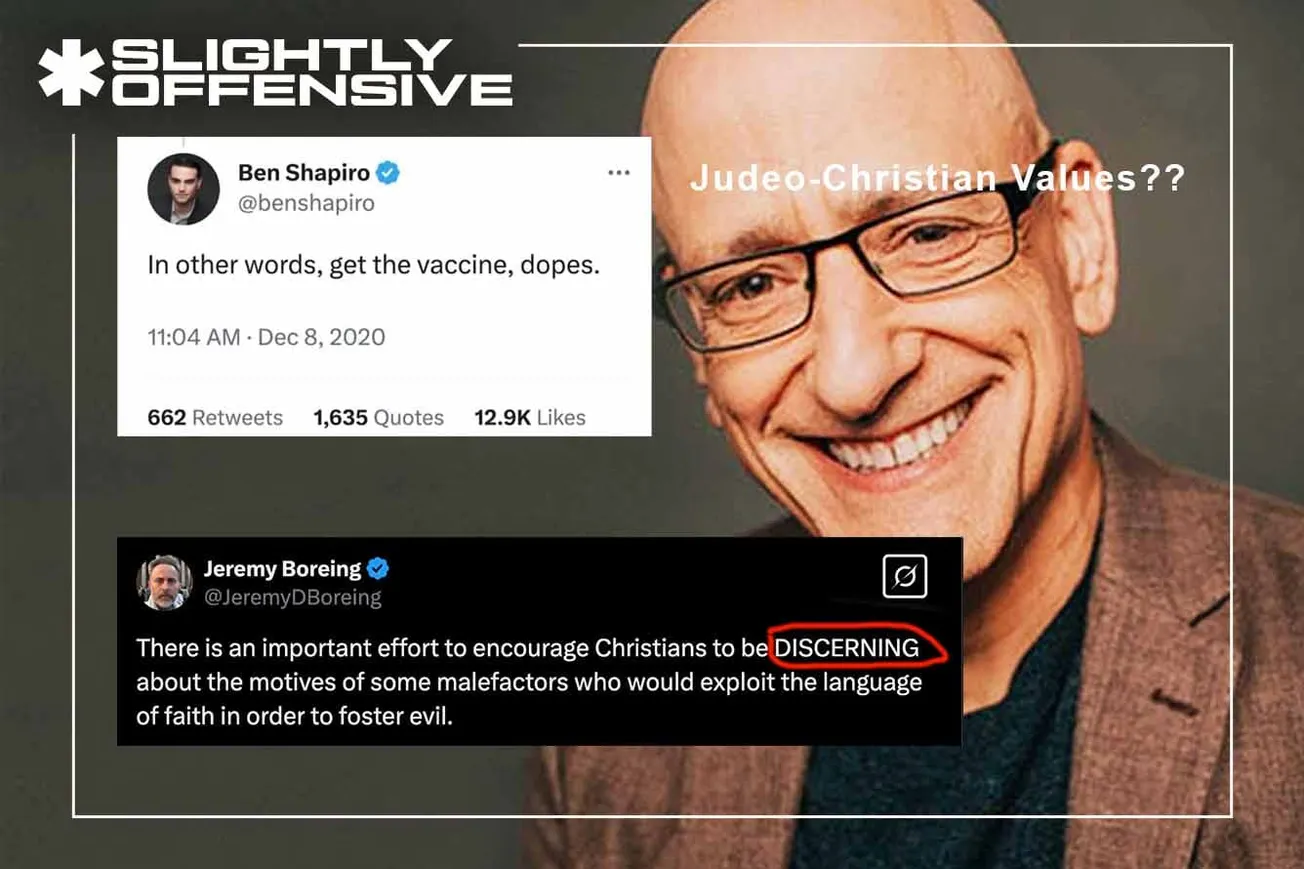 Boreing’s emphasis on Christian discernment is ironic, considering his public support for the COVID vaccine—something his co-founder Ben Shapiro also endorsed, even calling unvaccinated people “dopes.” If Boreing couldn’t recognize one of the biggest deceptions in modern history, what qualifies him to lecture Christians on discernment?