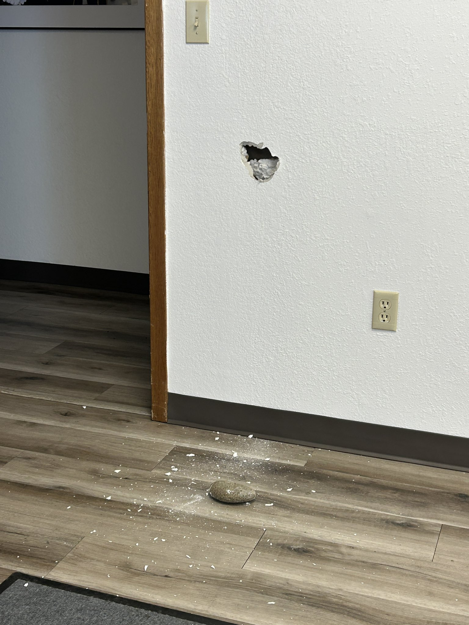 The assailant(s) also threw rocks through the windows