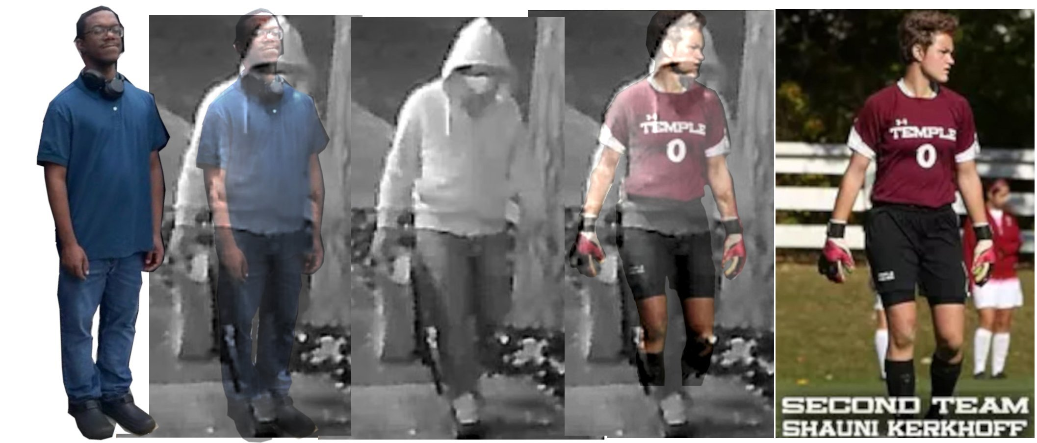 Composite overlays and proportional modeling identify Kerkhoff as a 94–98 percent match. The height, shoulder-hip geometry, and lumbar curvature align. Even the gait tells a story: the suspect displays a distinctive right-leg hitch, mirroring a documented injury Kerkhoff sustained in 2015.