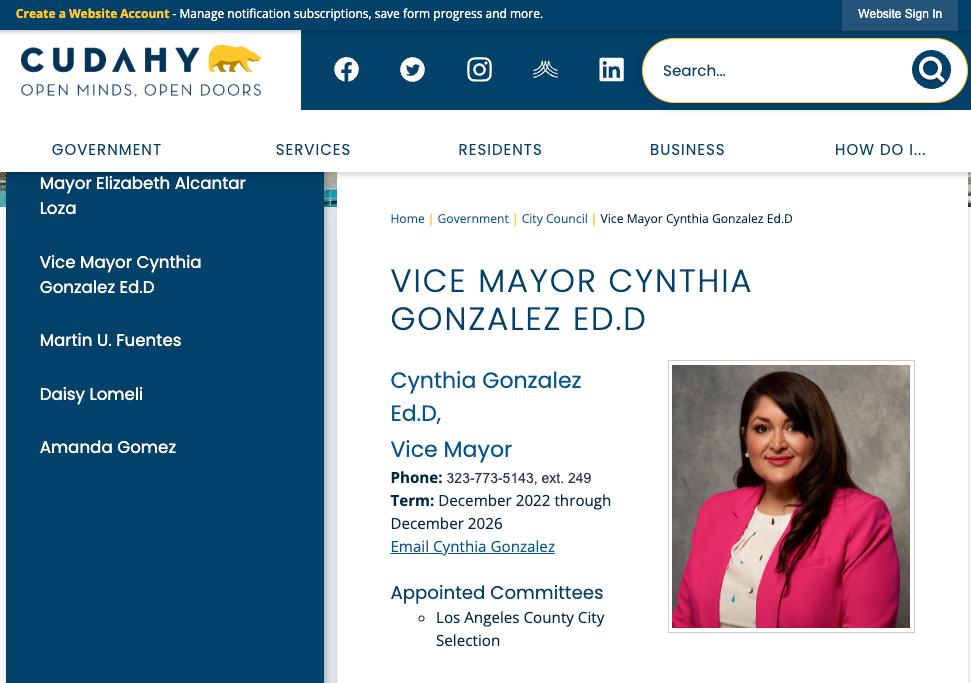 According to her official biography, Gonzalez, who has lived in Cudahy for 12 years, holds two master’s degrees from UCLA and has a professional background in education policy.