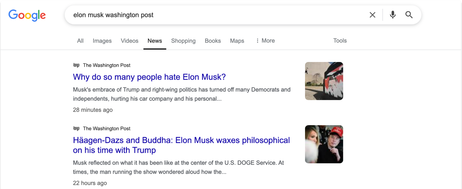 In any case, after a quick search, it does seem they're obsessed with the billionaire. In the past two weeks, WaPo has run dozens of articles about Musk. Maybe he is tired of their efforts to vilify him.