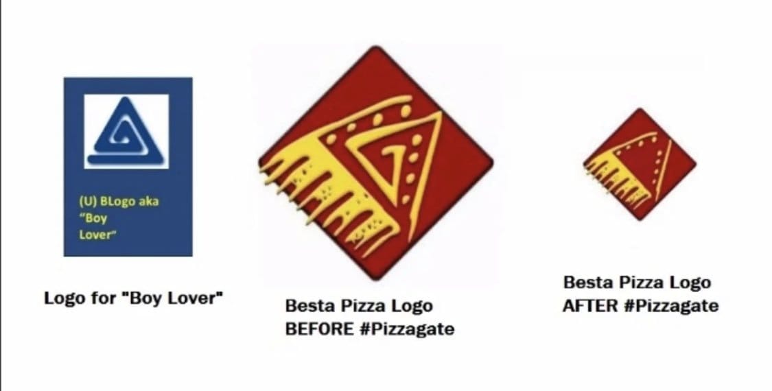 The "Boy Lover" symbol has also been associated with Pizzagate, Pizza being another code word used by pedophiles. A restaurant caught up in the Pizzagate conspiracy, was Besta Pizza, which had the "Boy Lover" symbol in its logo.