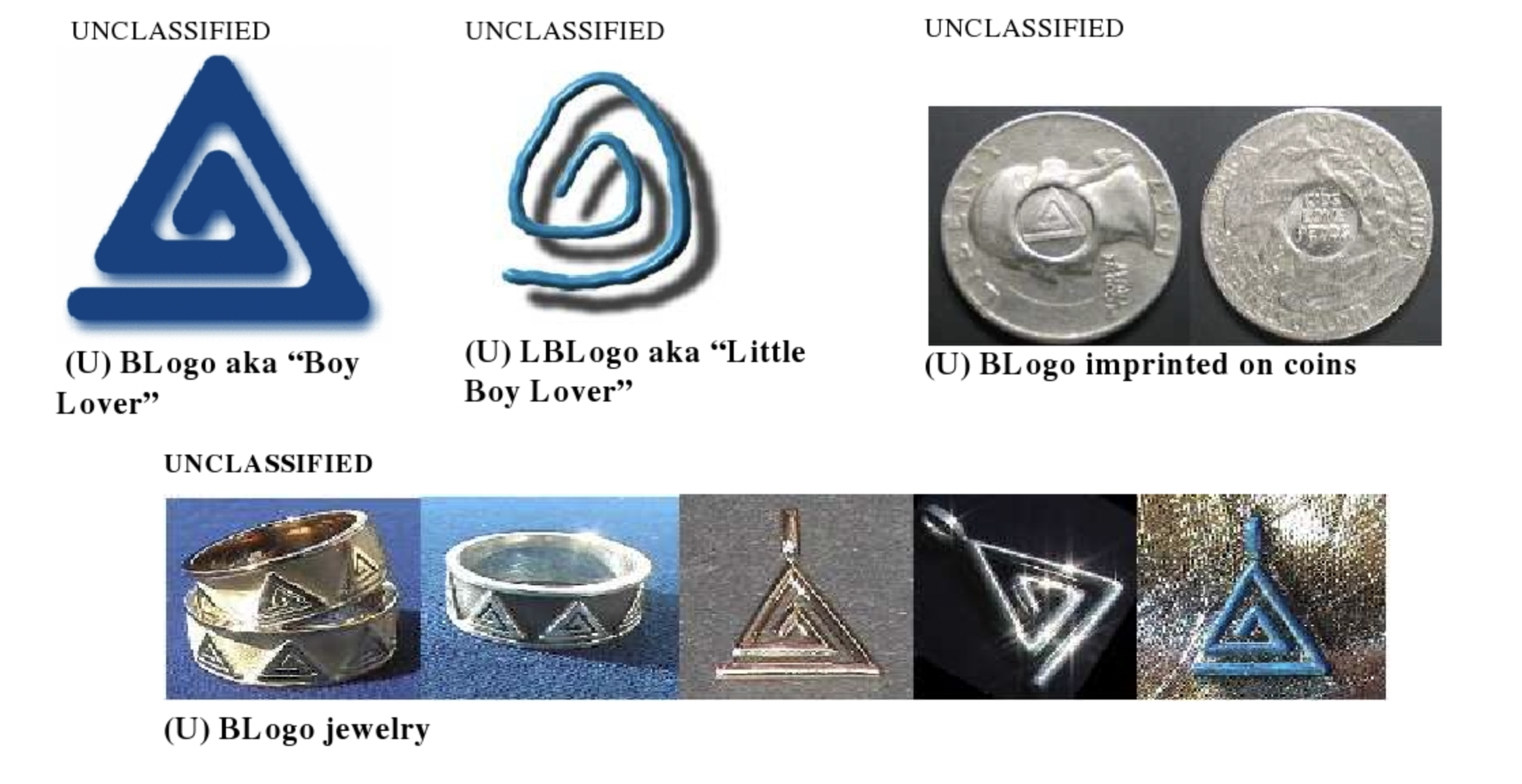 When we compare the symbol to what the FBI has identified as pedophiles symbols, it looks very similar. Below, you can see the triangular spiral and the circular spiral, which are the most widely recognized. This symbol is called the "Boy Lover" – men who love boys.
