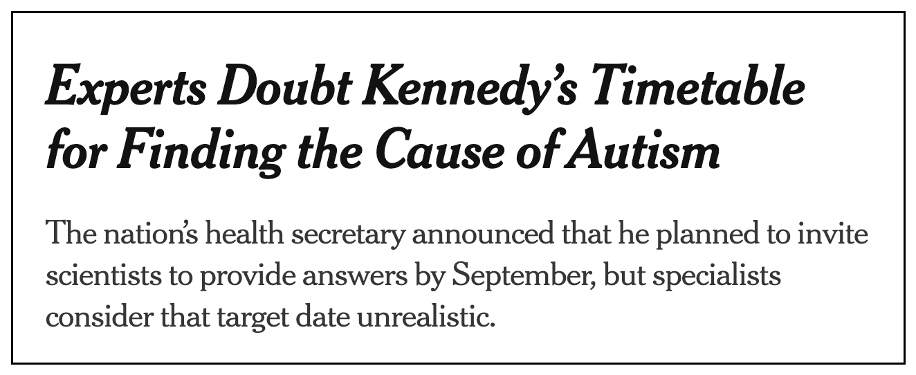 The most important on this list is RFK Jr.'s pledge to uncover the underlying causes of autism. He has promised to deliver these answers to the American people by September 2025 (in less than six months).