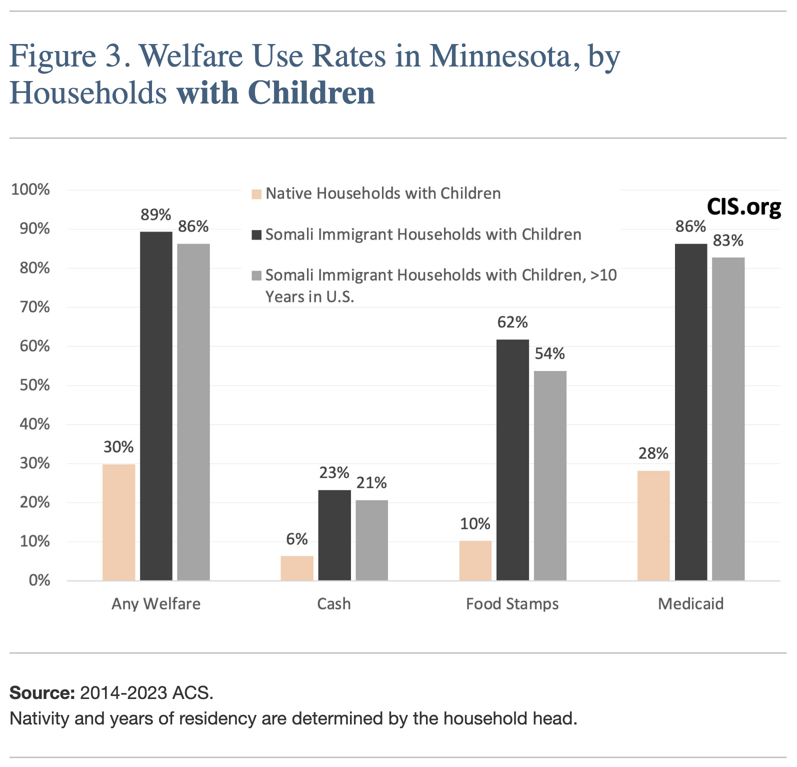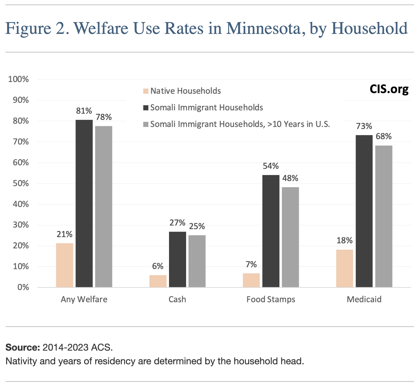 Data compiled from a decade of U.S. Census Bureau surveys shows a whopping 81 percent of Somali-headed households in Minnesota use at least one major welfare program.