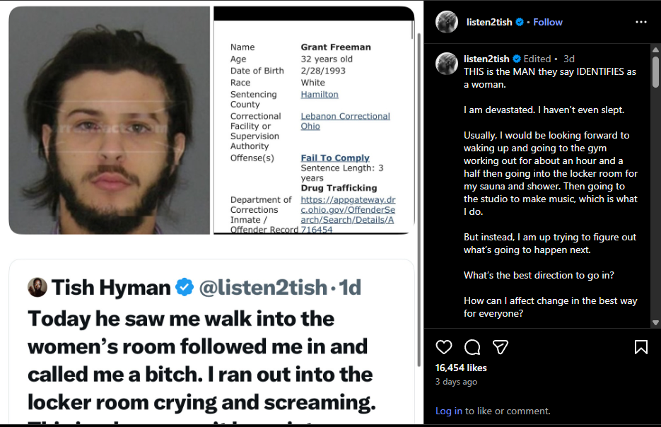 Another day, another entitled male predator cloaked in "inclusivity" rhetoric, terrorizing women in spaces they once called safe — while gyms and activists cheer the invasion.