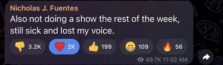 Fuentes had announced that he was taking a break from his show as far back as the 14th, directly contradicting claims provided by irrelevant influencers. On top of this, Alex Jones also defended Fuentes on X.