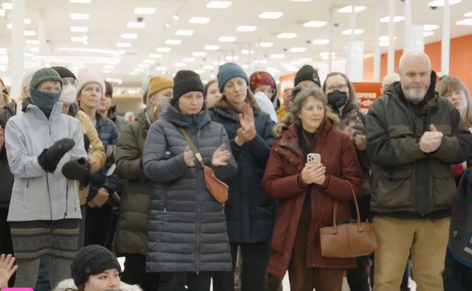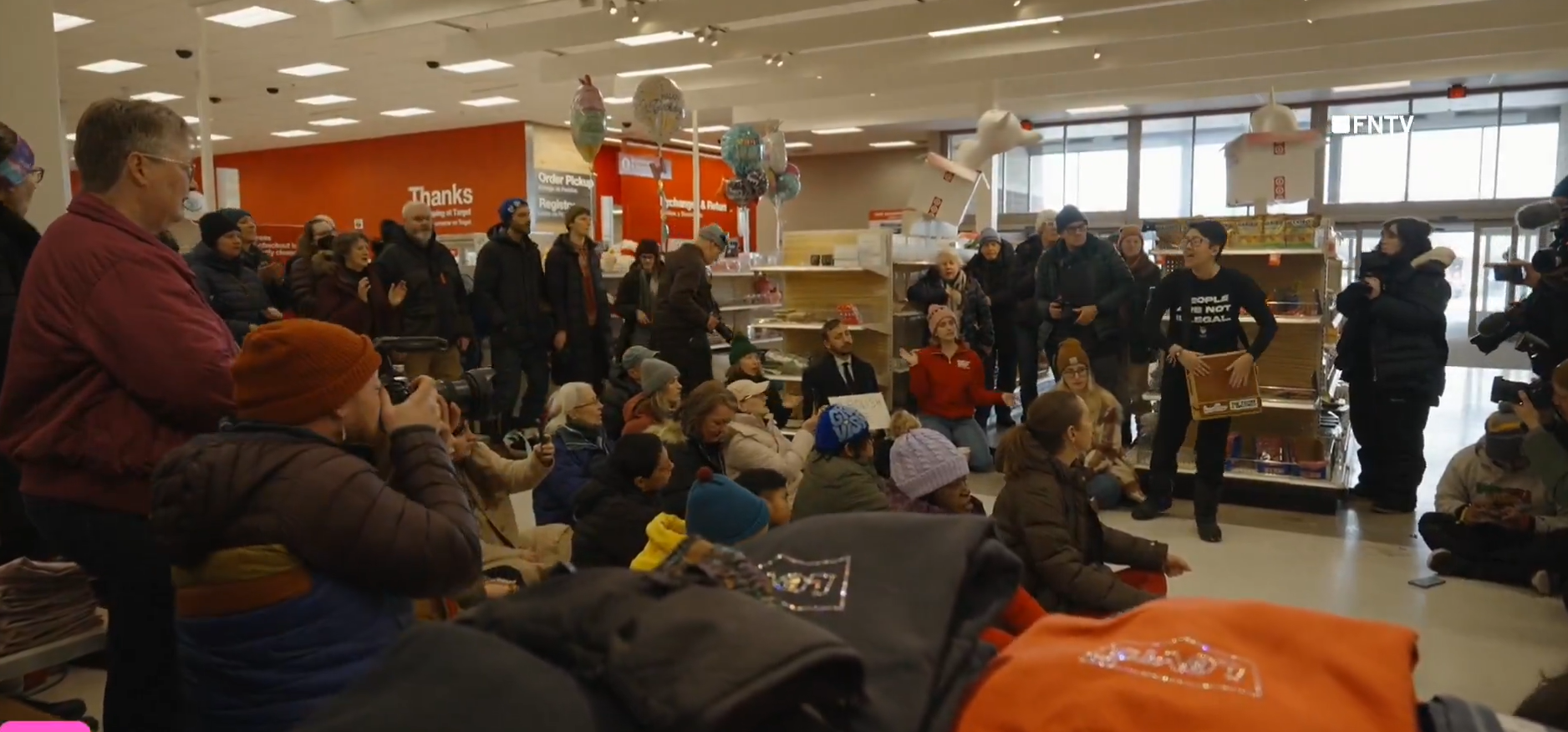 NOW: "We won't stop fighting" sing Anti-ICE protesters and clergy are inside St Paul TARGET, staging a sit-in pic.twitter.com/nK6BNFbmm6
