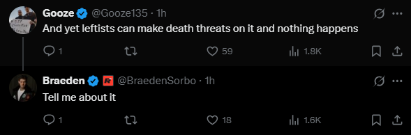 Replies poured in, echoing the outrage: One user noted, "And yet leftists can make death threats on it and nothing happens."
