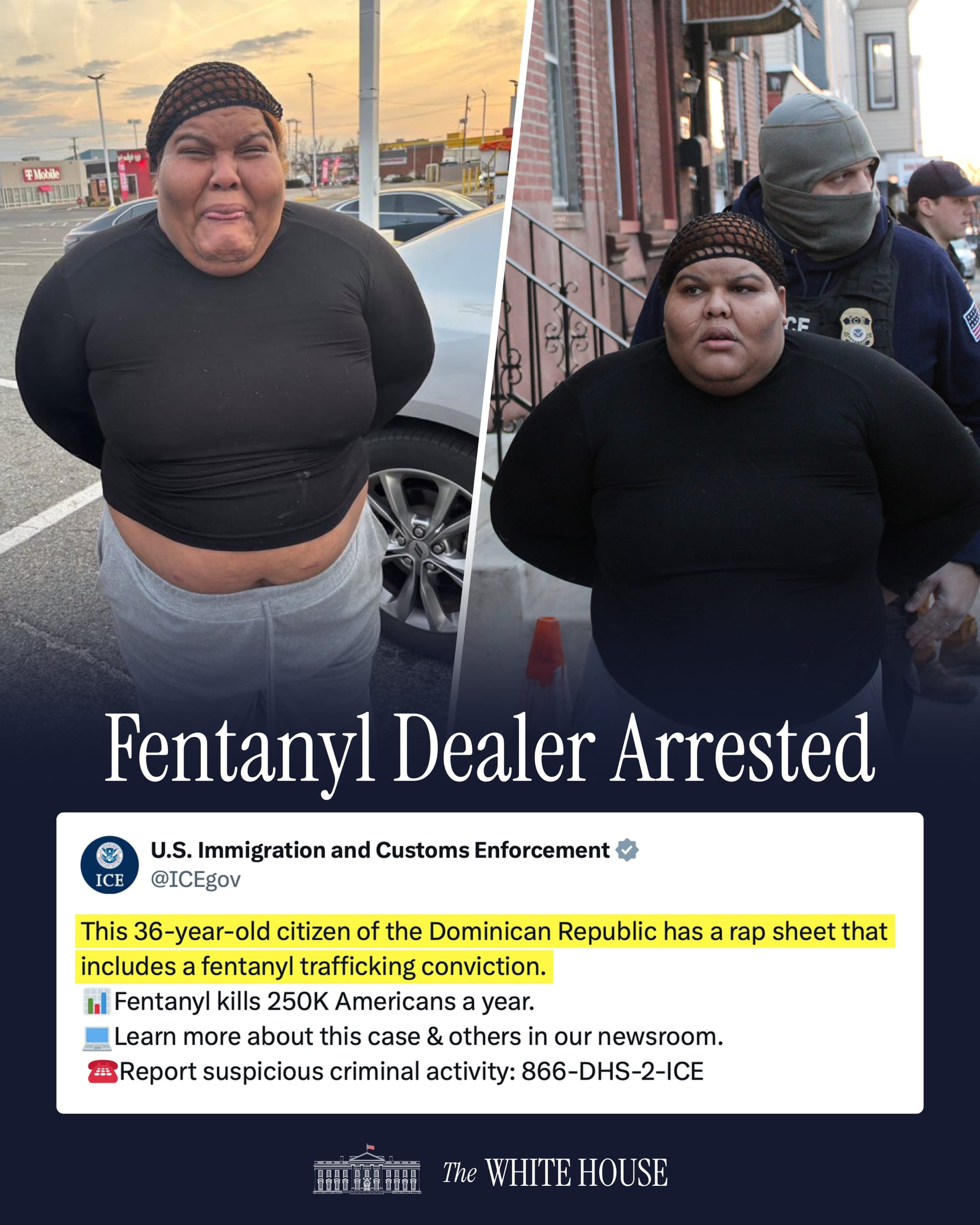 Despite these disappointing numbers, the White House has attempted to mask their failures with emotionally-striking visuals of deportations in action. Below is a picture of an arrested fentanyl trafficker crying hysterically, which was turned into a meme format after being run through an AI 'Ghibli' generator.