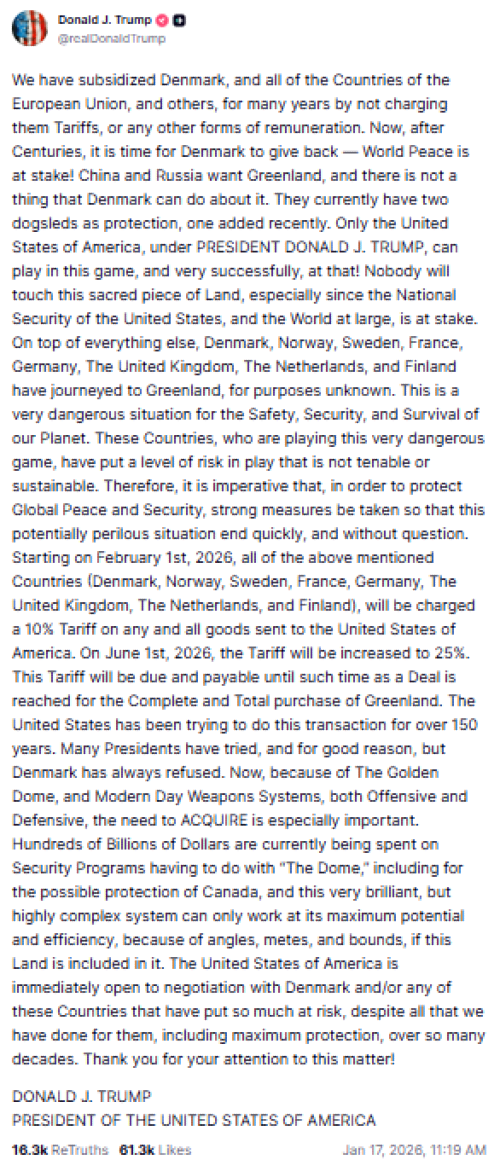 — Ursula von der Leyen (@vonderleyen) January 17, 2026