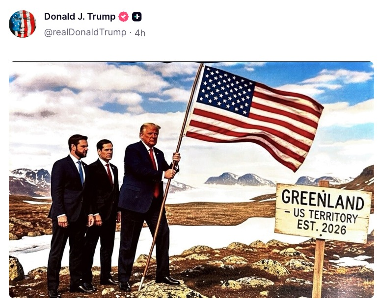 Proponents argue that acquiring the territory would strengthen U.S. defenses against adversarial expansion, with Trump posting AI-generated images depicting Greenland under American control alongside Vice President JD Vance and Secretary of State Marco Rubio.