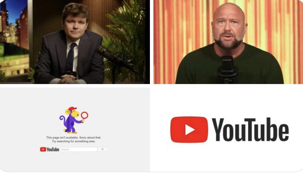 Mere hours after Infowars founder Alex Jones and America First host Nick Fuentes launched new YouTube channels on Thursday, urging followers to subscribe, YouTube pulled the plug.